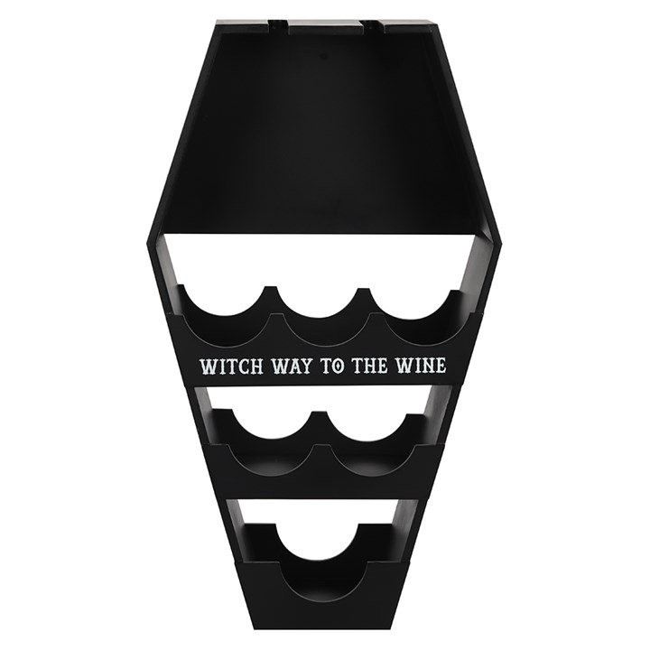 This coffin shaped wine shelf is sure to delight guests at your next spooky event. Includes slots for four wine glasses and six bottles with ‘Witch way to the wine’ text. Product Dimensions: H62cm x W36cm x D16cm Packaged Dimensions: H69cm x W40cm x D19cm