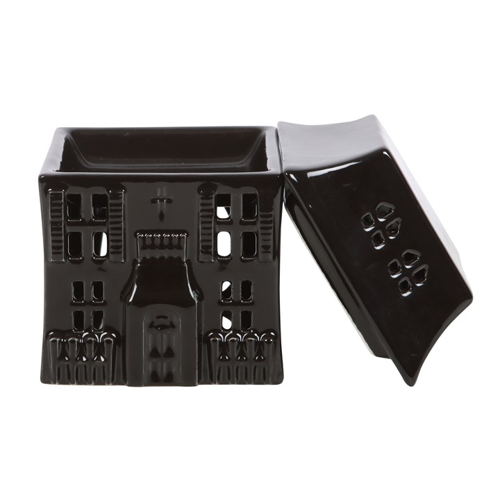 Embrace the ‘spirit’ of Halloween year-round with this spookily stylish haunted house oil burner. When a lit tealight is placed inside, the flickering flame casts eerie shadows, creating a bewitching atmosphere. A great piece for those who appreciate unconventional style and gothic decor. Recommended for use with fragrance oil diluted with water. Do not use more than one tealight and remove lid when in use.
