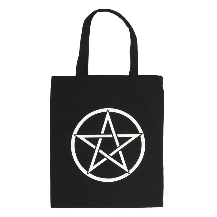 Perfect for doing the weekly shop, carrying library books, holding essentials for short day trips and more, this cotton tote bag makes a great eco-friendly addition to anyone’s collection. Features a large pentagram printed on black. 40cm tall, not including handles.