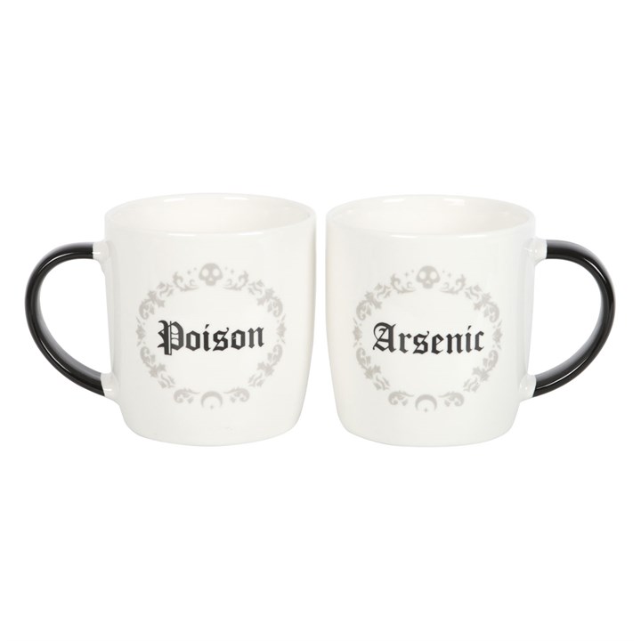 This delightfully dark mug set for couples is the perfect blend of fun and functional. With the playful inscriptions of ‘Poison’ and ‘Arsenic’, these mugs are sure to make even the coldest ghouls crack a smile over their morning brews. Sold as a set of 2 mugs in a matching gift box. Microwave safe. 350ml capacity.
