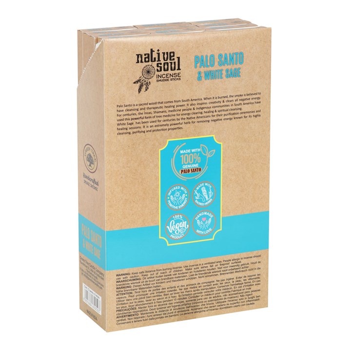 These Palo Santo & White Sage Native Soul smudge incense sticks from Green Tree have been handcrafted to cleanse and purify surroundings and balance the mind and soul. Each inner box includes 8 sticks to use during yoga, meditation and spiritual rituals. Each set contains 12 individual boxes of incense sticks that are great for gifting. Cruelty-free.