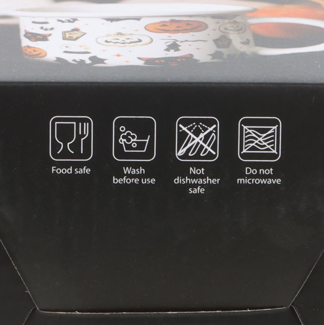 Get in the spirit of Halloween with this chunky ceramic mug featuring vintage inspired Halloween motifs like black cats, bats, potion bottles and jack-o’- lanterns. 480ml. Microwave safe.